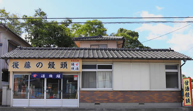 ご利益があります様にと、願いを込めて作られていく後藤の甘酒饅頭。創業昭和23年、後藤の甘酒饅頭は先代から受継いだ味と技に信頼をもらい今もずっと後藤の饅頭を守り続けている。味の特徴:独特の風味を持ち、甘さを押さえたこしあんを包み蒸し上げほのかな甘酒の香りと、口あたりもまろやかにできた甘酒饅頭となっています。毎日その日の朝に蒸した甘酒饅頭は、正午には完売しますのでお早めにお買い求め下さい。